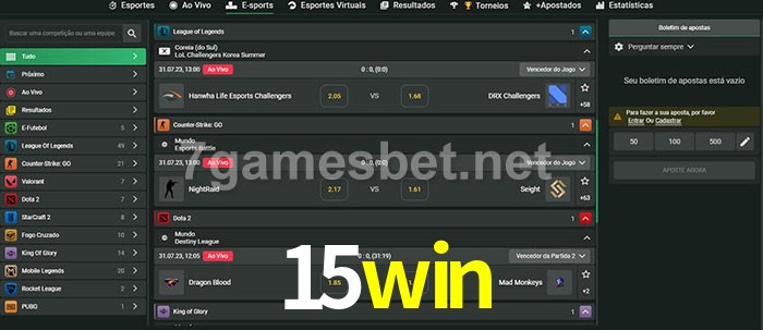 A aposta 15win oferece aos jogadores a experiência mais conveniente de apostas em eSports!